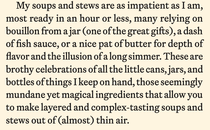 There is a general assumption, one shared by many of my peers in food media, that the boxes of chicken and vegetable stock sold in the grocery store are basically useless—no better than water. (Some food writers even live in a fantasy world where making homemade stock is a regular weekend activity like laundry and Industry on Sundays. I know no such world.) The other assumption is that bouillon cubes are to be avoided—a misguided shortcut for adding possibly detrimental flavor to soups and stocks.